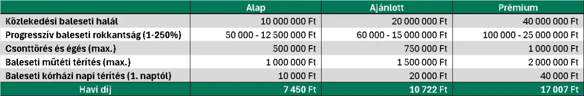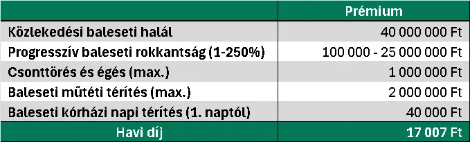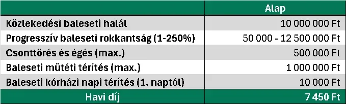 Nagy teherbírású balesetbiztosítási csomagjaink kimagasló anyagi biztonságot nyújtanak a hosszú utakon és azon kívül, nemzetközi és belföldi viszonylatban egyaránt. A védelem a munkavégzés során és a pihenőidőben bekövetkező balesetekre is érvényes, így a hét minden napján, 24 órában számíthatsz ránk.